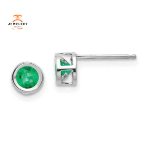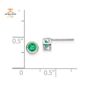 14KT GOLD ROUND BEZEL SET EMERALD STUD EARRINGS