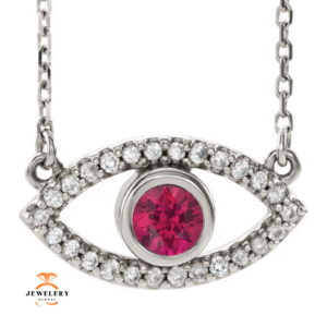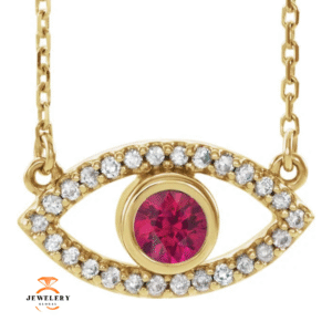 14KT GOLD RUBY & WHITE SAPPHIRE EVIL EYE 18″ NECKLACE