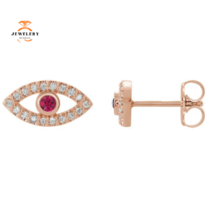 14KT GOLD RUBY & WHITE SAPPHIRE EVIL EYE EARRINGS
