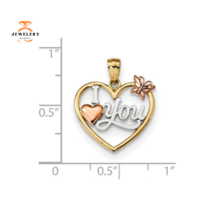 14KT THREE TONE “I LOVE YOU” HEART WITH BUTTERFLY PENDANT