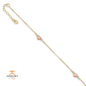 14KT TRI-COLOR PUFFED HEART ANKLET