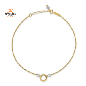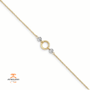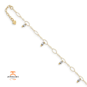 14KT Two-Tone Gold Mirror Beaded Open Link Anklet