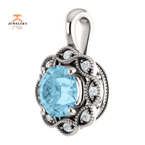 14KT WHITE GOLD 0.75 CT AQUAMARINE & .04 CTW DIAMOND VINTAGE PENDANT