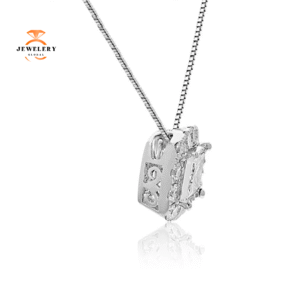 14KT White Gold 0.76 CTW Princess Cut & Round Diamond Halo Pendant